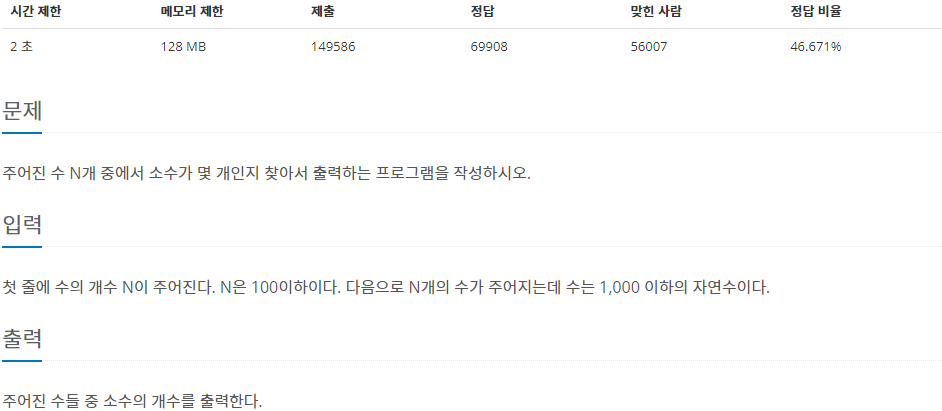 첫 줄에 수의 개수 N이 주어진다. N은 100이하이다. 다음으로 N개의 수가 주어지는데 수는 1,000 이하의 자연수이다.