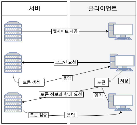 - client는 서버 측에서 전달 받은 토큰을 쿠키 혹은 local storage에 저장한다.