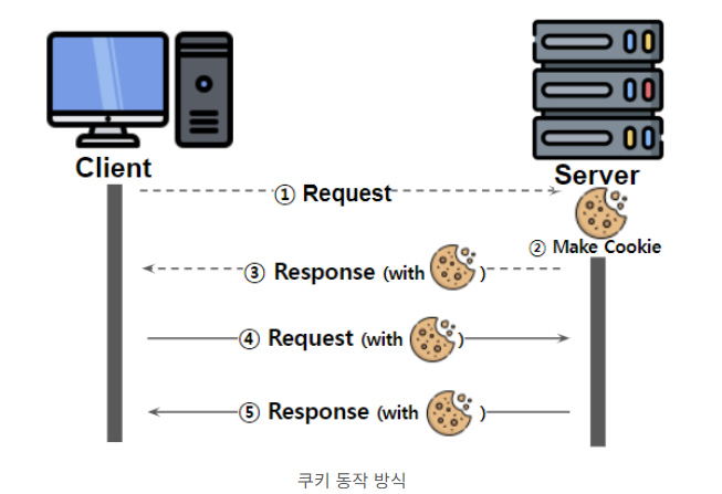 - 이후 해당 client는 요청을 보낼 때마다, 매번 저장된 쿠키를 요청 헤더의 Cookie에 담아 보낸다
