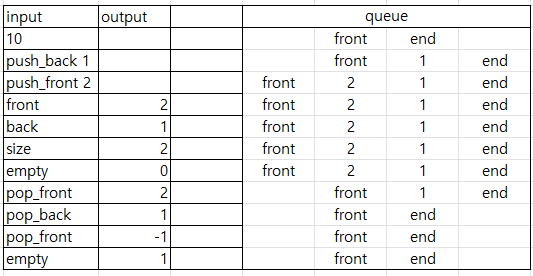 입력 : 10 push_back 1 push_front 2 front back size empty pop_front pop_back pop_front empty
