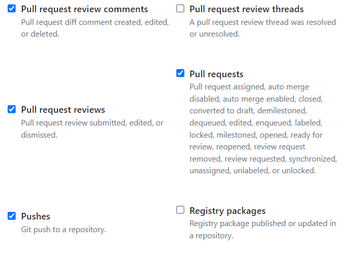 이렇게 pr과 review, push 관련된 것만 체크했다.