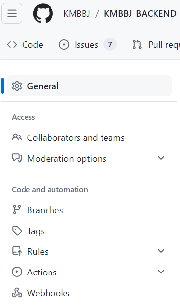 알람을 받을 리파지토리에 가보면 똑같이 Webhooks가 있다.