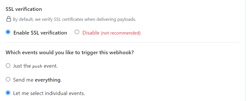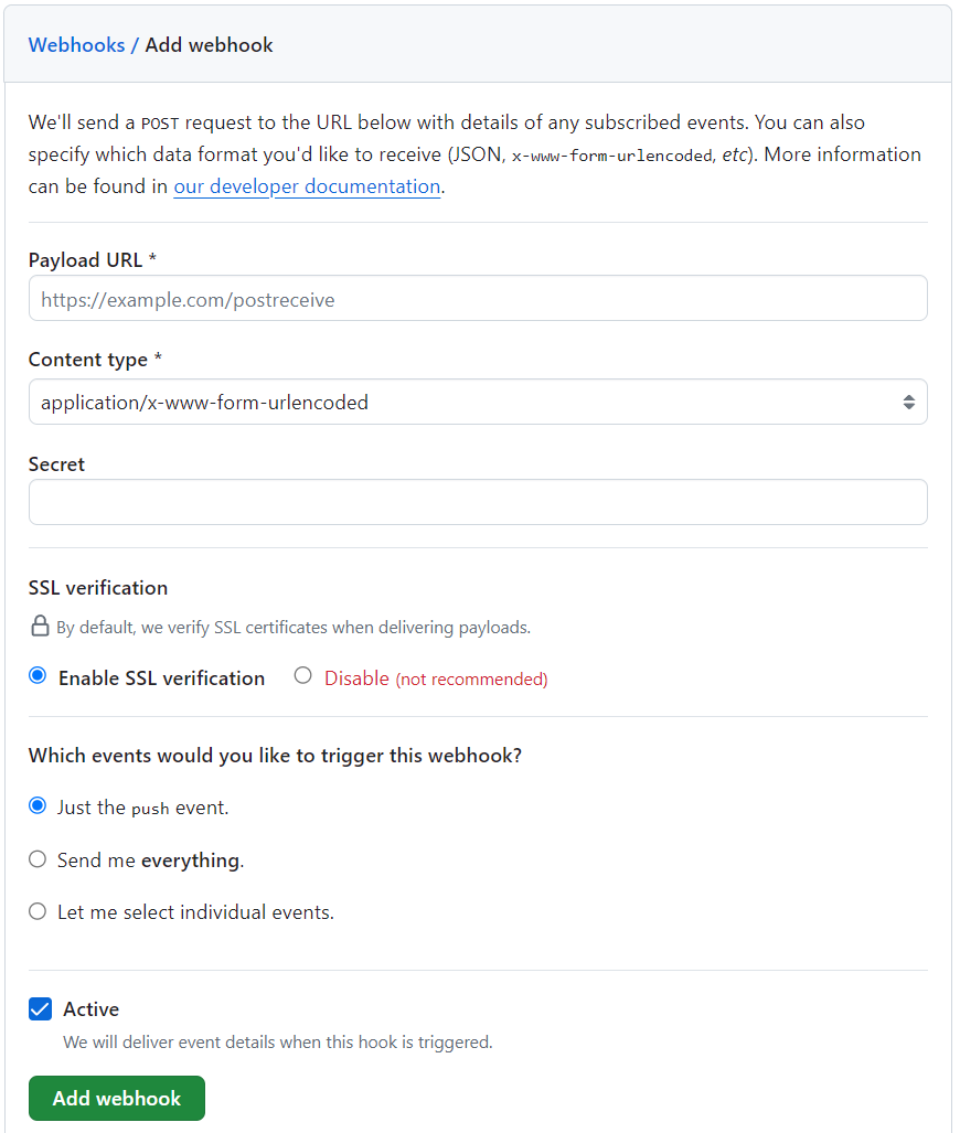 Payload URL에 아까 discord에서 받은 URL을 복사해 넣어준다. 이때 중요한것이 뒤에 github를 붙혀줘야 한다.