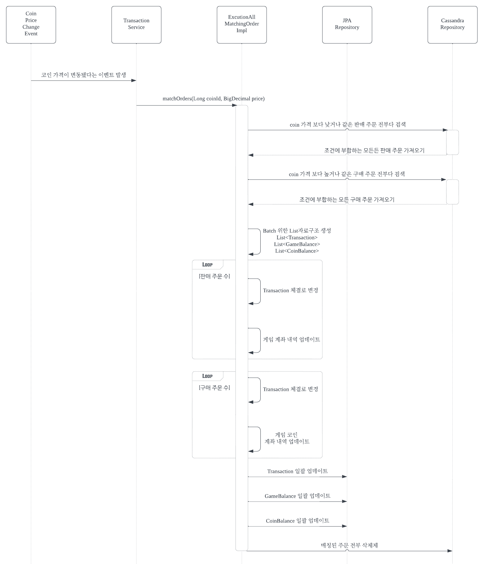 - 코인가격에 의해서 체결이 되야만하는 주문들을 카산드라에서 가져온다.