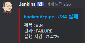 실패시 몇번째 빌드가 실패했는지 알려준다. 동일하게 클릭시 jenkins로 들어갈 수 있다.