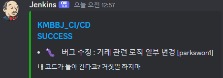 성공시 변경 내용을 알려준다. 클릭하면 jenkins로 들어갈 수 있다.