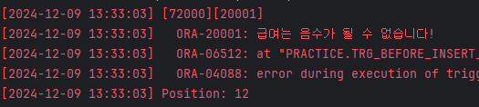 RAISE_APPLICATION_ERROR(-20001, '급여는 음수가 될 수 없습니다!');