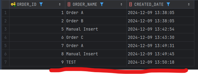 VALUES (global_seq.NEXTVAL, 'Order A');