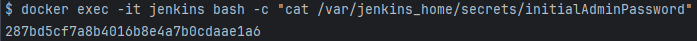 docker exec -it jenkins cat /var/jenkins_home/secrets/initialAdminPassword