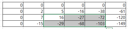 여기서 16을 잘봐야하는데 16은 왼쪽의 7, 위쪽의 5, 자신의 6이 합쳐졌다. 그리고 왼쪽위인 2를 빼줘야한다.