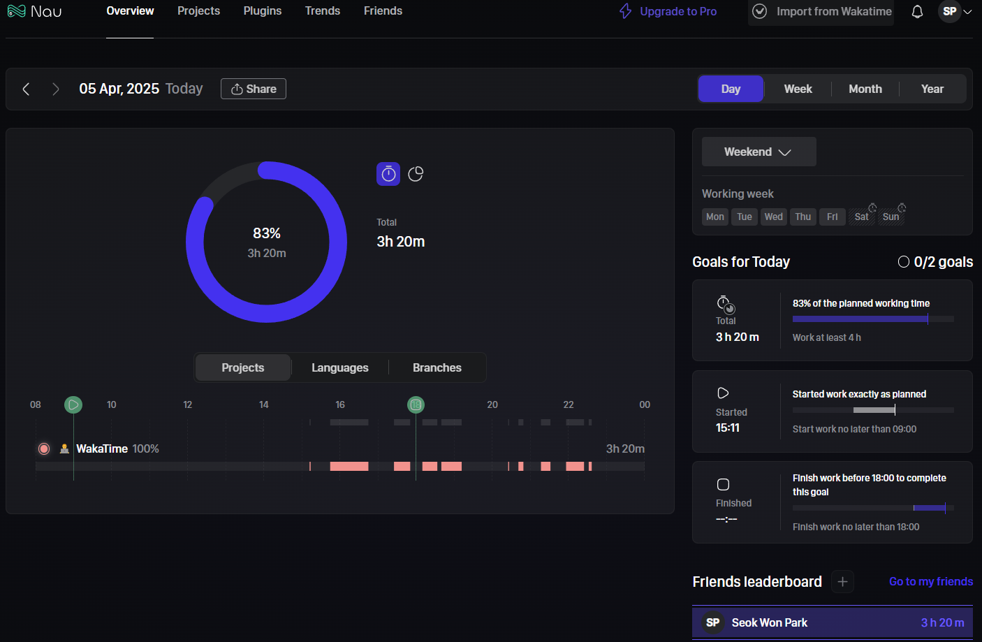 Nau나 WakaTime은 내 정보를 2주밖에 저장을 안해준다. 따라서 나는 내가 공부한 내용을 따로 DB에 저장해두고 내가 볼수있는 dashboard를 만들것이며 궁극적으로 git readme에도 잔디처럼 표시해주는 걸 만들 것이다. 화이팅