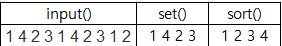 시간이 넉넉하기 때문에 숫자를 받고 정렬하면된다. 이때 중요한 것은 중복값이 없어야 한다는것이라 set를 사용해 중복을 삭제면된다.
