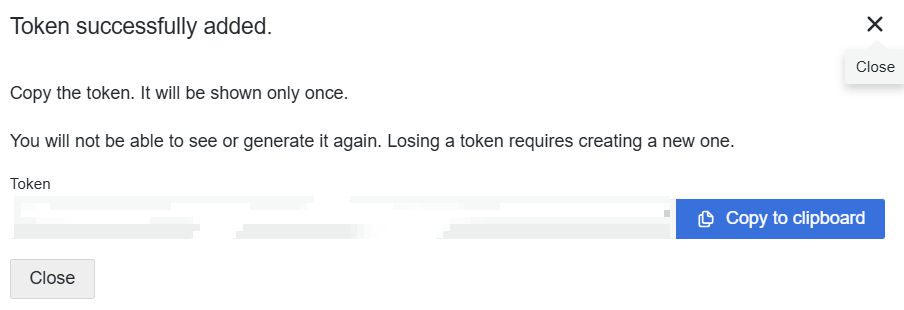 Token은 창을 닫으면 안보이기 때문에 어딘가 꼭 복사를 해서 기록해두자!