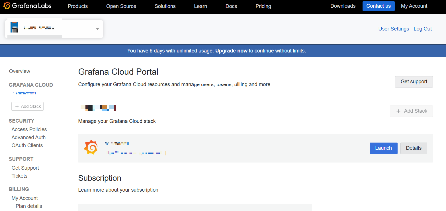 Grafana Labs에서 제공하는 Sass 서비스로 별도의 서버나 인프라를 구축할 필요없이 Grafana Labs에 있는 솔루션들(Grafana, Loki, Tempo, Mimir)을 사용할수 있다. 웹 브라우저만 있으면 손쉽게 대시보드를 만들고, 로그/매트릭/트레이스 등을 통합 관리할 수있는 장점이 있다.
