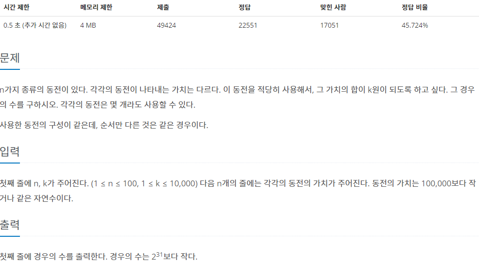 https://www.acmicpc.net/problem/2293