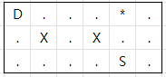 이 사진은 문제의 예제입력 3을 리스트로 나타냈다. 이제 고슴도치가 S로부터 출발하고 *에서 물이 출발한다. 고슴도치가 이동한 경로에는 0으로 표시가 남고 물이 이동하는 곳은 count가 표시된다.