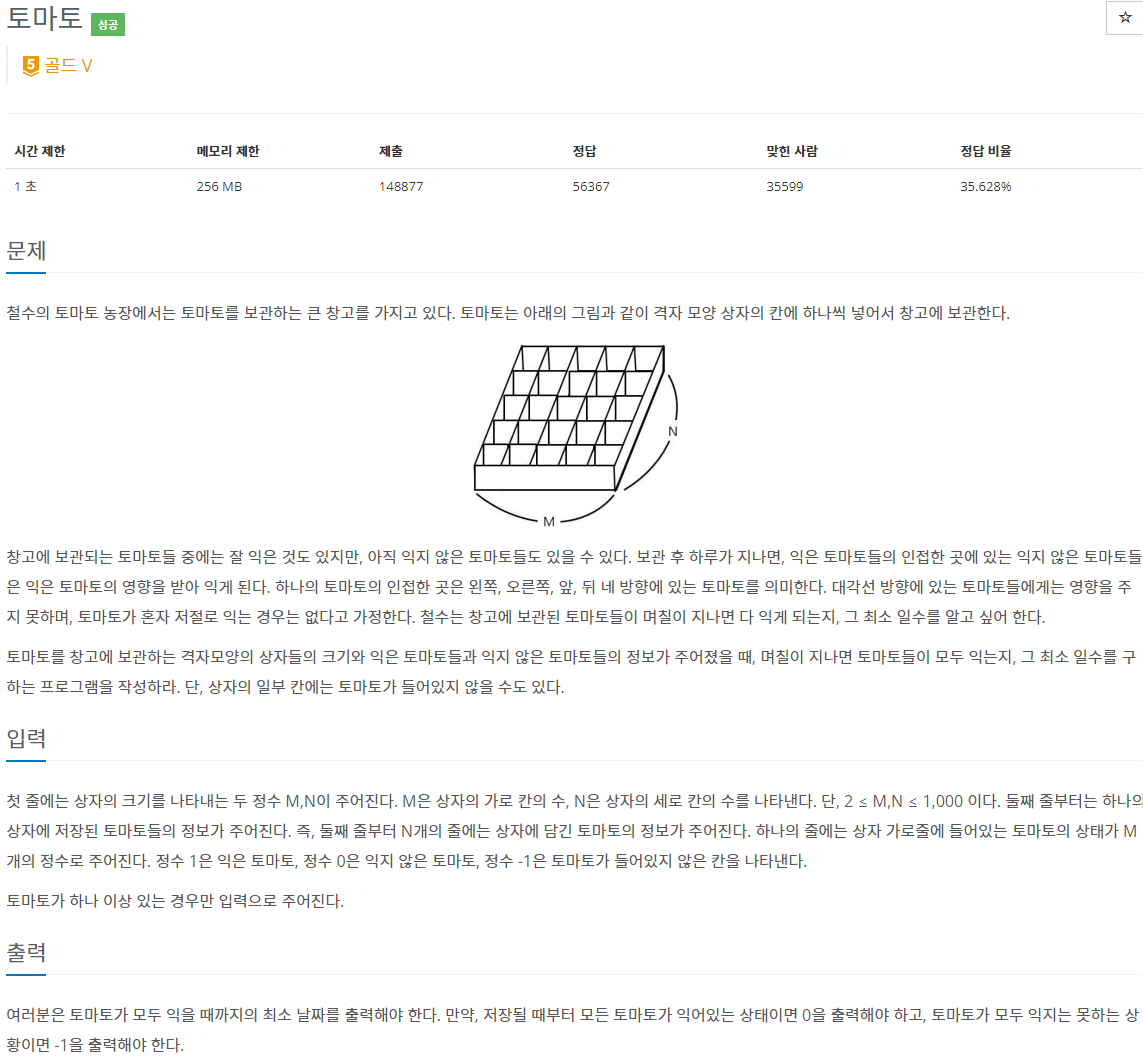 https://www.acmicpc.net/problem/7576