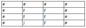 J가 이동할수 있는 곳은 아래밖에 없으니 아래로 이동한 모습이고 F는 왼쪽 아래로 번진 모습이다.