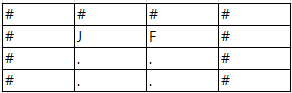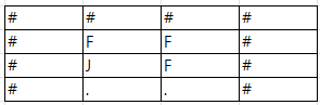 예시의 board를 count를 통해 보여주겠다. J는 지훈이의 위치 F는 불의 위치이다.