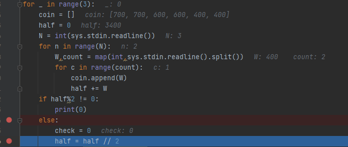 if같은 분기는 주황색 half같은 변수는 회색 print같은 출력은 파란색으로 구분해서 표시해준다.