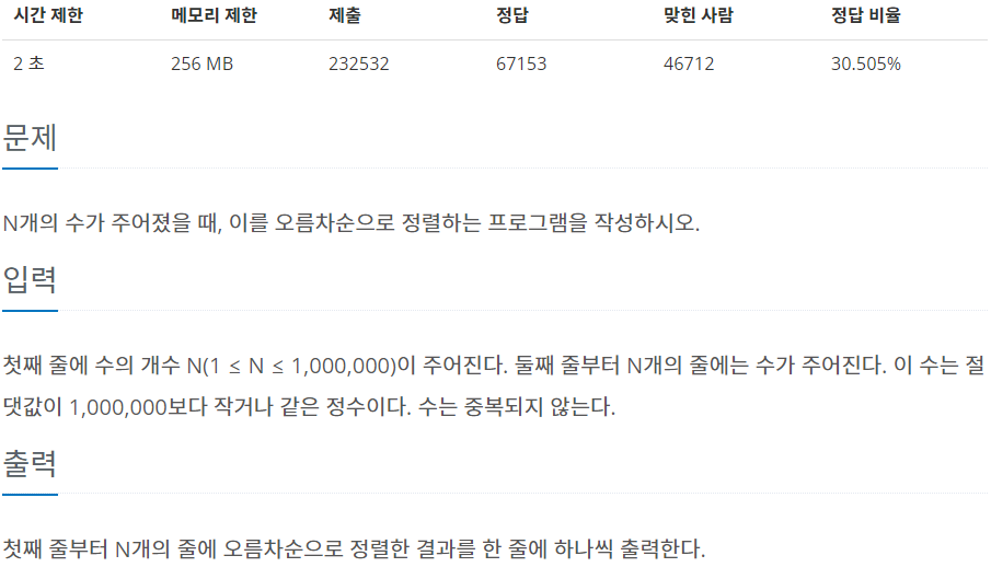 따라서 수들을 정렬하지 않고 index로 생각해서 따로 리스트를 만든 뒤 수index의 value 값을 그수로 로 만드는 방식을 사용한다.