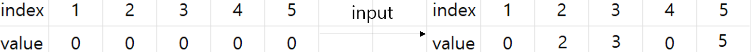 그후 리스트를 오름차순으로 value가 0이 아닌 index의 value만 출력해준다면 받아온 수들이 정렬된 효과를 볼수 있다.