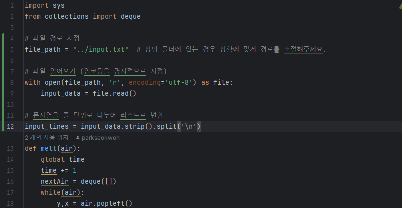 일단 나같은 경우는 폴더 구조를 이런식으로 만들었다. 백준 폴더안에 코딩 테스트 문제들(py 파일들이 들어 있고) 예제 값을 입력하는 txt파일이 상위 폴더에 존재한다.
