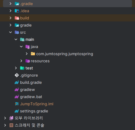 Gradle 버전, 의존성 캐시, 플러그인 설정등이 저장된다. 보통 버전관리를 하지 않는다. - build 폴더 :