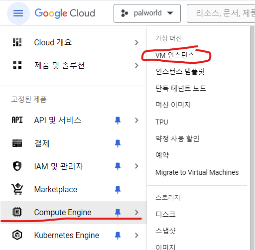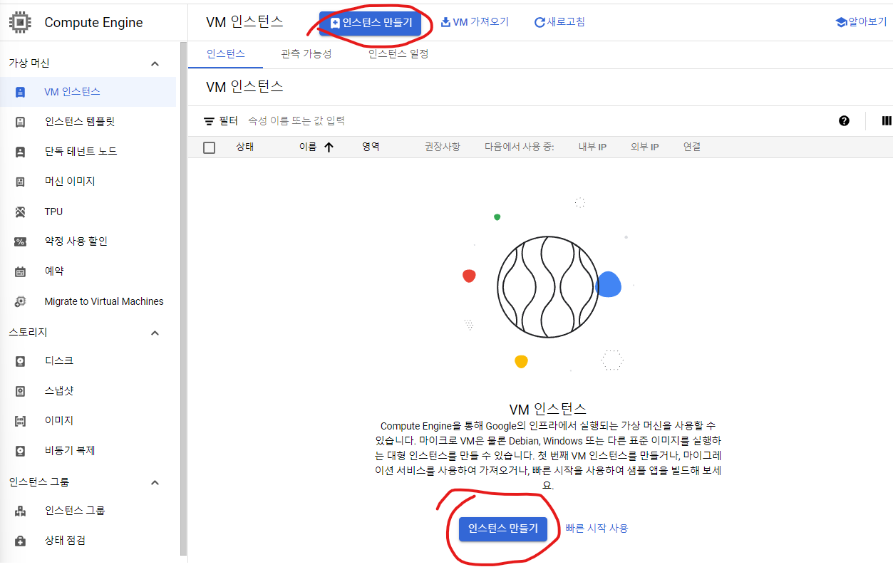 메뉴에서 Compute Engine -> VM 인스턴스를 클릭한다.