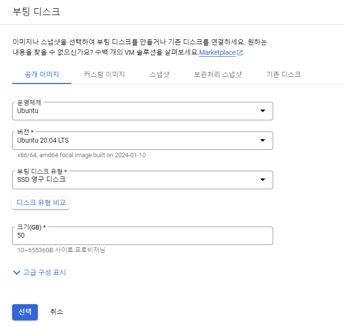 윗 정보랑 모두 똑같이 해준다. 50GB 정도는 해야 넉넉하다