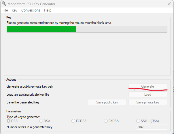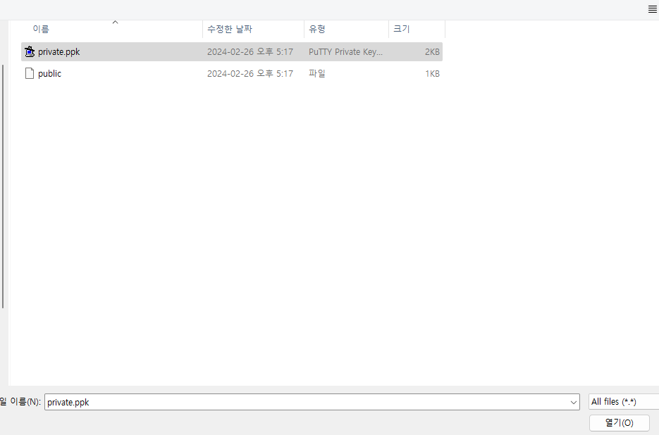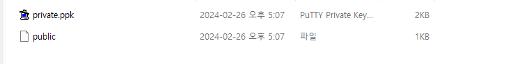 Save public key, Save private key를해서 key파일을 2개 만든다.