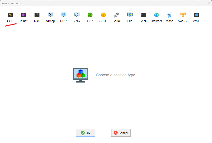 그럼 이런 창이 뜰텐데 SSH를 누른다.
