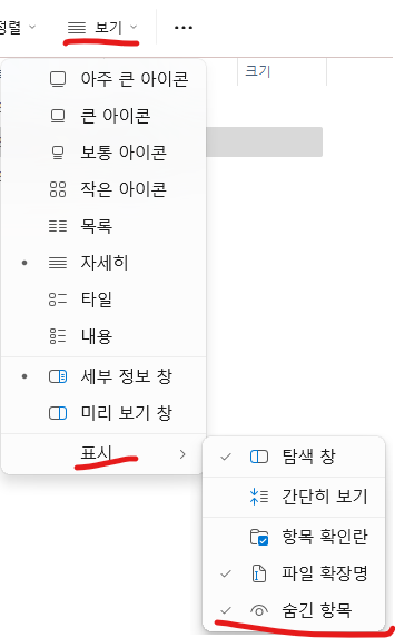 AppData같은 폴더가 보이지 않는다면 보기의 숨긴 항목을 보여지도록 해야한다.