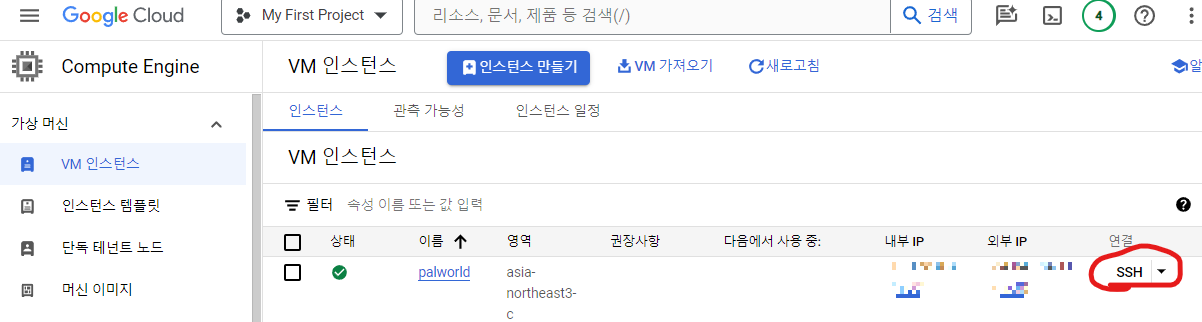 이번엔 구글 클라우드의 SSH로 접속해준다.