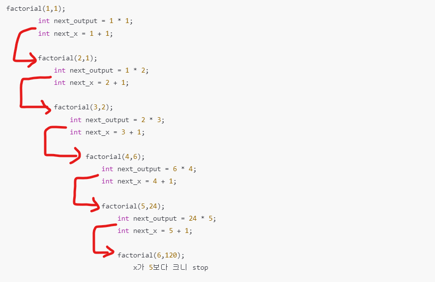 반복해서 factorial를 호출하고 i값을 변경해 주는것이 비슷하지 않은가?