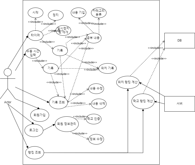 타이머를 시작할 수 있어야하고 정지할 수 있어야하며 공부를 하지 않는 동안 일시 정지를 할 수 있고 재개를 할 수 있어야한다. 그리고 이러한 방식으로 측정된 시간을 기록할 수 있어야한다.