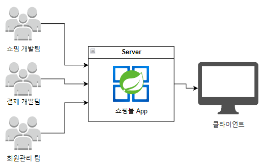 -> 쇼핑서버에 디도스 공격을 당해도 결제 서버와 회원관리 서버는 살아남을 수 있다. - 독립적인 배포가 가능하다.