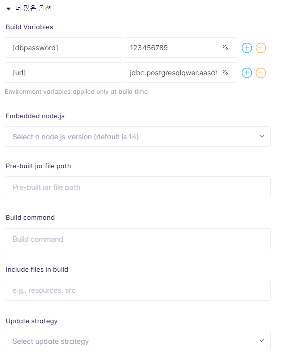 Build command 같은 경우 프로젝트를 빌드하기 전에 꼭 해줘야하는 명령어가 있으면 추가해주면 된다.