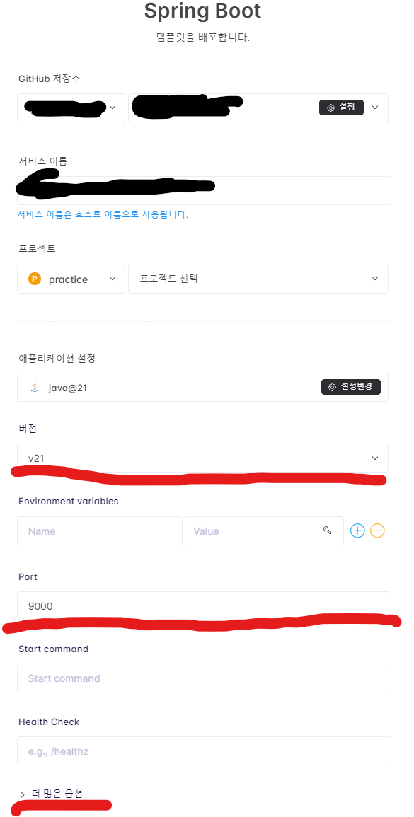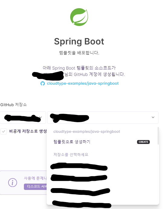 다시 cloudtype로 돌아와 파란버튼을 눌러서 spring boot를 만들자